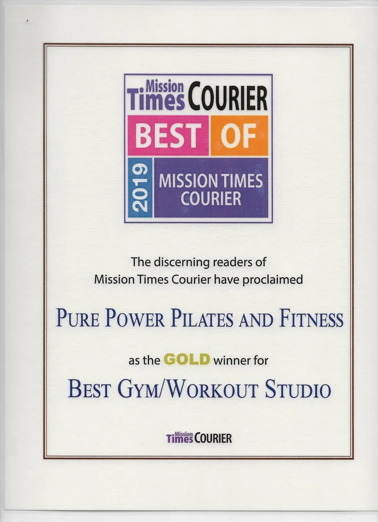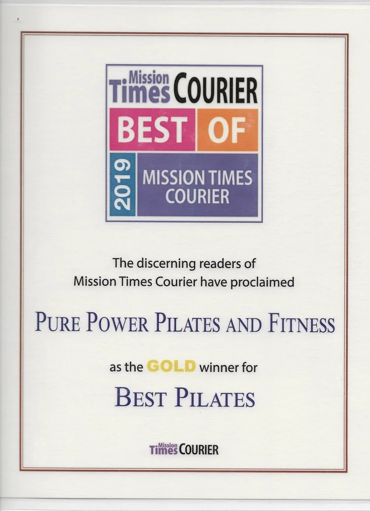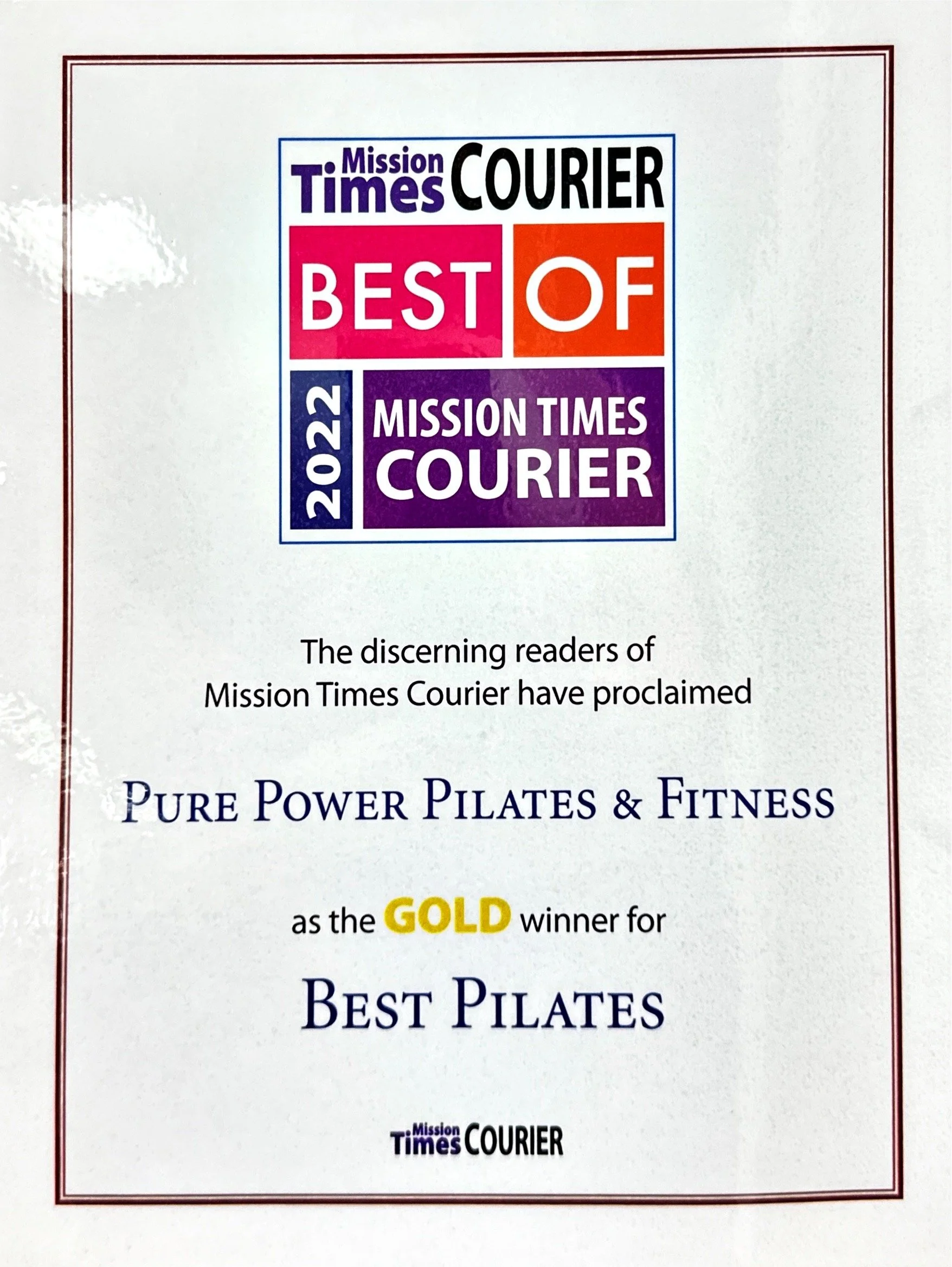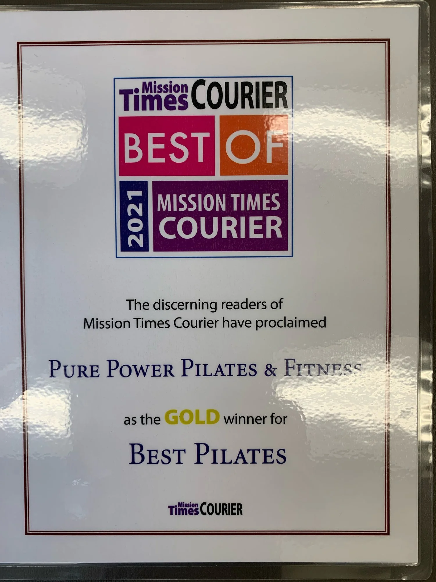 Voted Best Pilates Studio 2024 by the Mission Times Courier.