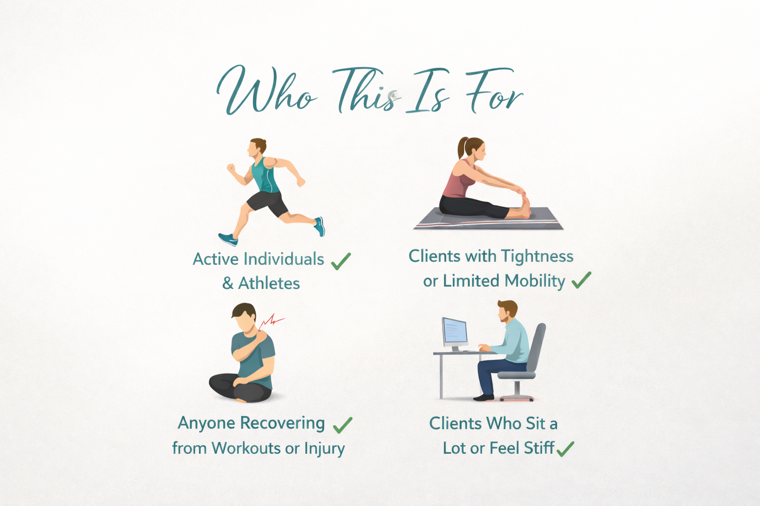 Clients who sit a lot or feel stiff